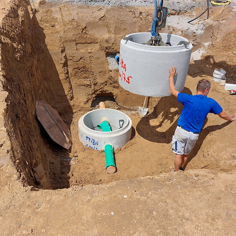 Errichtung moderner Versickerungsanlagen wie Rigolen oder Sickerschächte zur kontrollierten Rückführung des Wassers ins Erdreich.